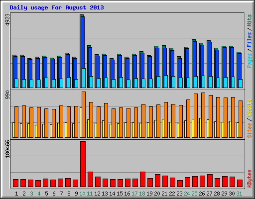| Day | Hits | Files | Pages | Visits | Sites | KBytes | ||||||